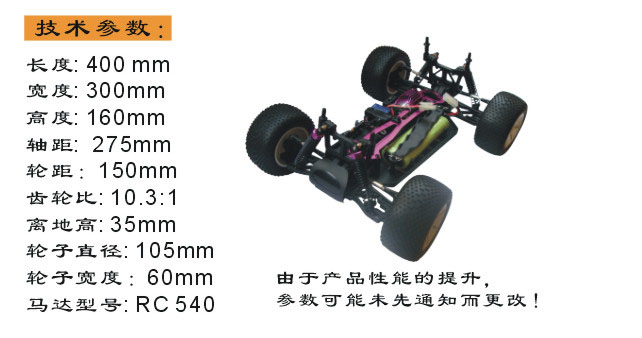 产品名称:HSP 无限 1/10比例电池动力遥控劲速卡车(型号:94115)