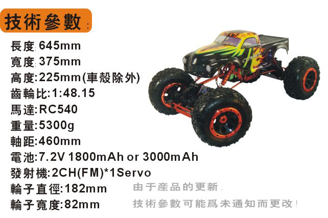 产品名称:HSP 无限 1/8电动遥控攀爬卡车(型号:94880T2)