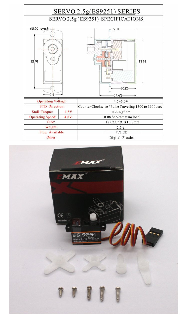 EMAX 银燕 2.5g 数码塑胶齿舵机 4.8V/0.27kg ES9251(数码塑胶齿)