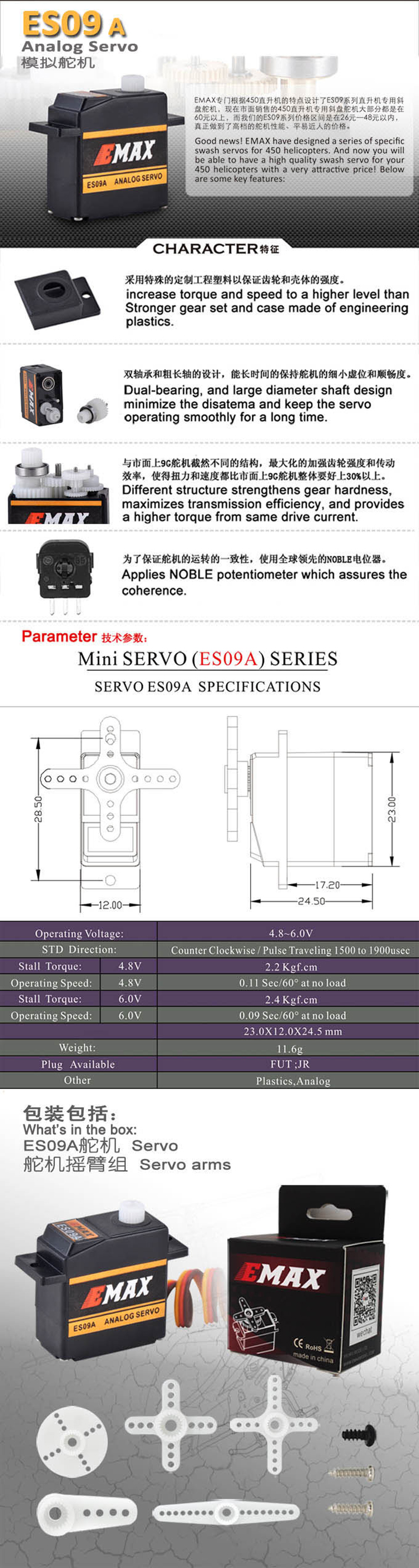 EMAX 银燕 ES09A 11.6g 模拟塑胶齿舵机 4.8V-2.2kg
