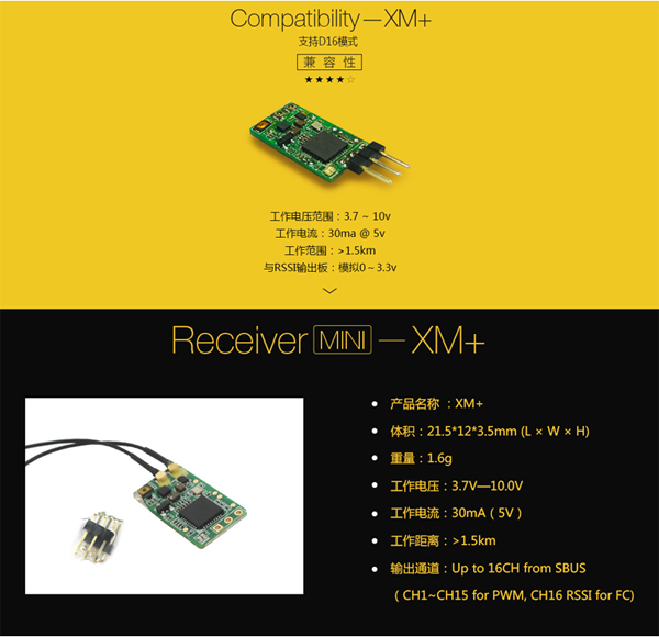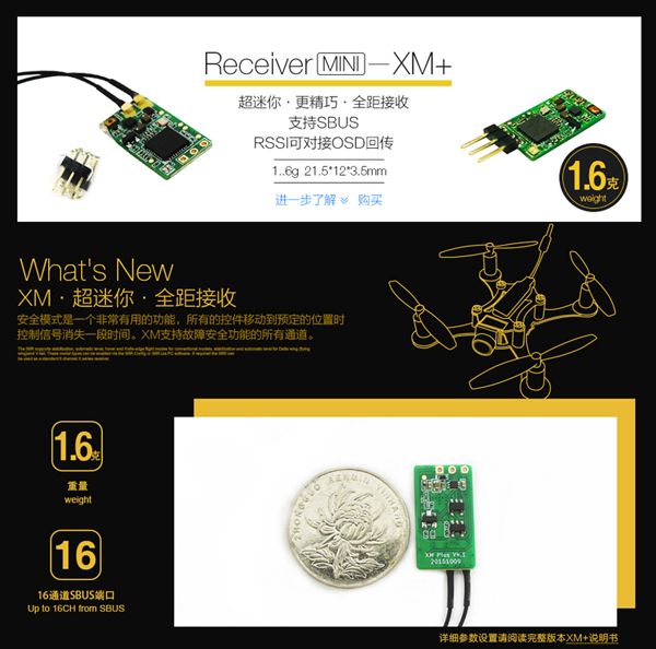 Frsky 睿思凯 16CH mini XM+ PLUS 接收机(双天线)