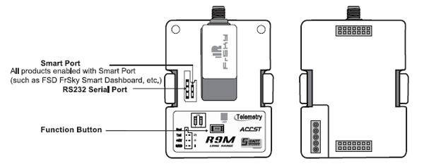 FrSky R9和R9M无线电控制系统是第一台以900MHz频率工作的FrSky远程系统。R9M模块提供4个可切换的射频功率输出,因此您可以为不同的飞行情况选择合适的功率。与另一款Frkky 2.4GHz长距离接收机(如L9R)相比,R9接收机具有更长的操作范围,高达10KM及以上。此外,R9还是可以连接到另一个接收机的冗余接收机,以确保您的飞机的安全。
