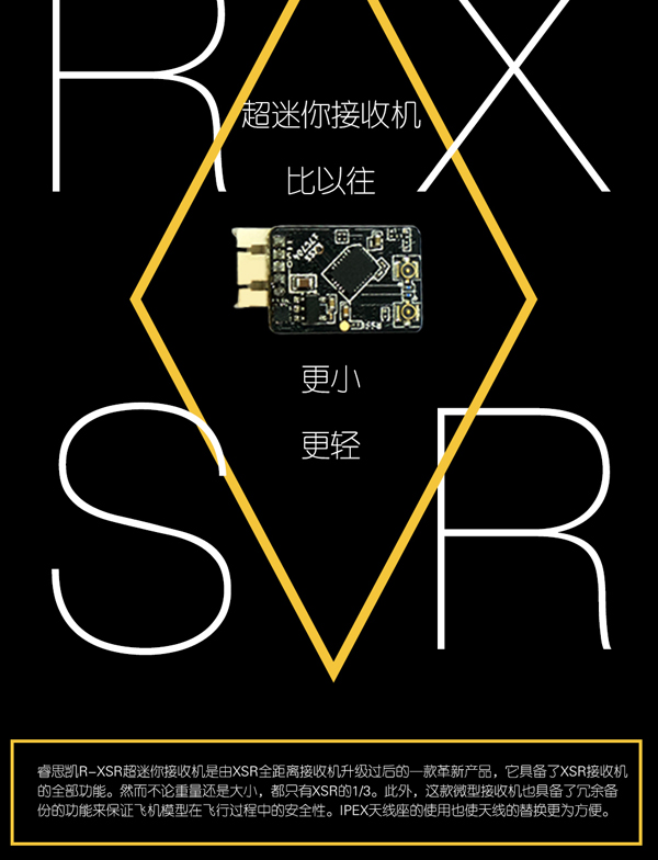 FrSky 睿思凯 R-XSR 微型接收机 1.5g 16CH接收机 X9D plus X9E X12S用 S-Bus CPPM