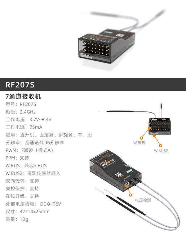 天地飞 2.4G 7通道 接收机 RF207S / 自带WBUS PPM