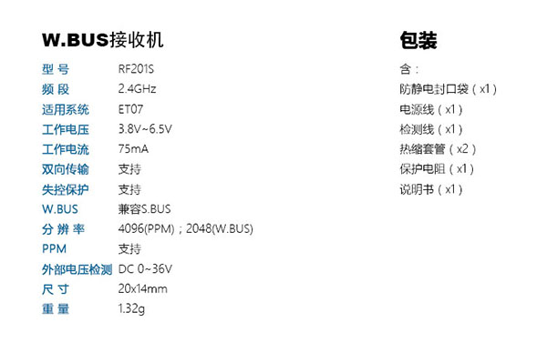 天地飞 2.4G WBUS 接收机 RF201S / 自带双向传输
