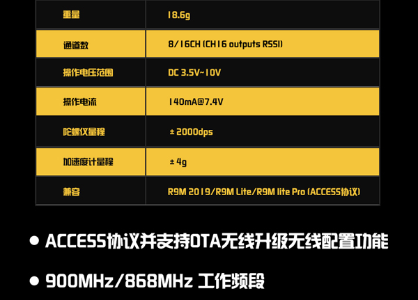 Frsky 睿思凯 R9 STAB OTA 900MHz 长距自稳 接收机 低延时 带T型天线