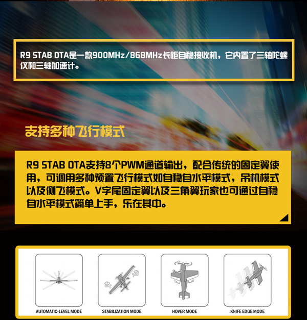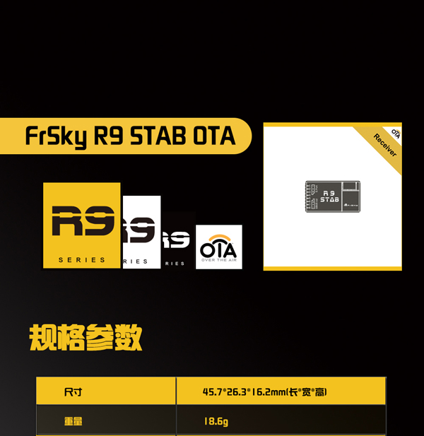 Frsky 睿思凯 R9 STAB OTA 868MHz 长距自稳 接收机 低延时 带T型天线