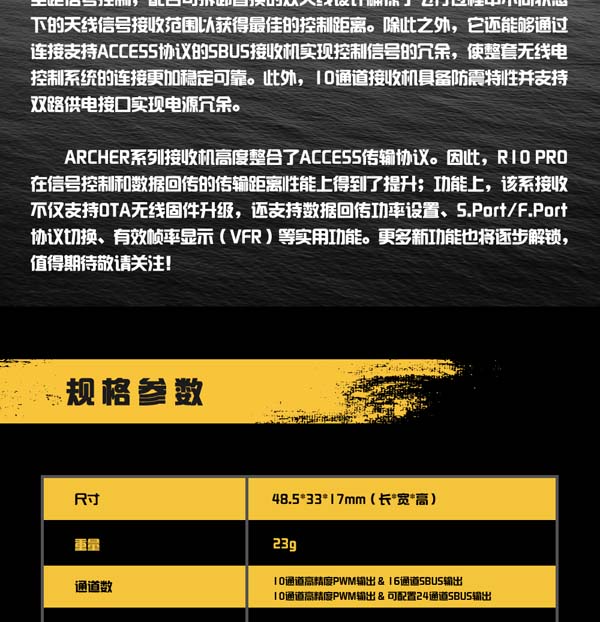 Frsky 睿思凯 Archer SR10 PRO 自稳接收机 10CH PWM ACCESS 支持 OTA 升级