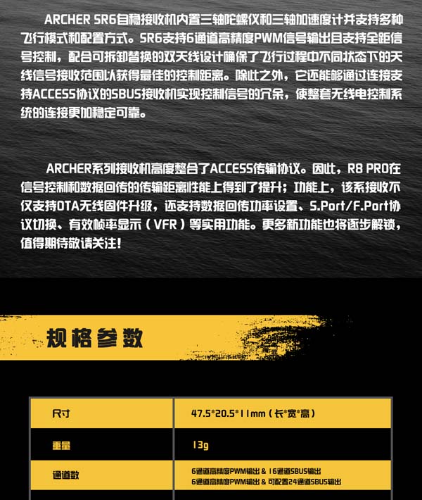 Frsky 睿思凯 Archer SR6 自稳接收机 ACCESS 协议 支持 OTA 数据回传
