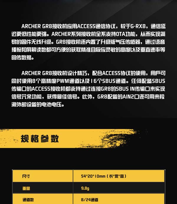 FrSky 睿思凯 ARCHER GR8 接收机 支持 OTA 升级 内置气压传感器 冗余备份