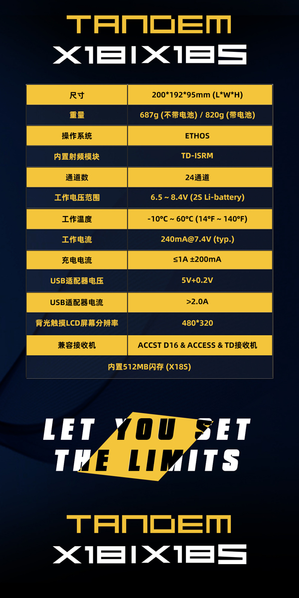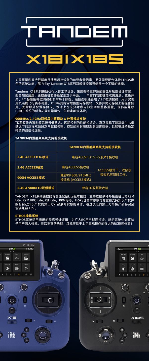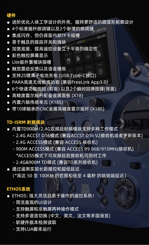 FrSky 睿思凯 TANDEM X18S 黑色 双频遥控器 ETHOS 中文系统