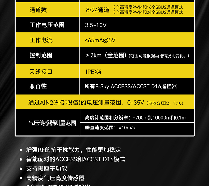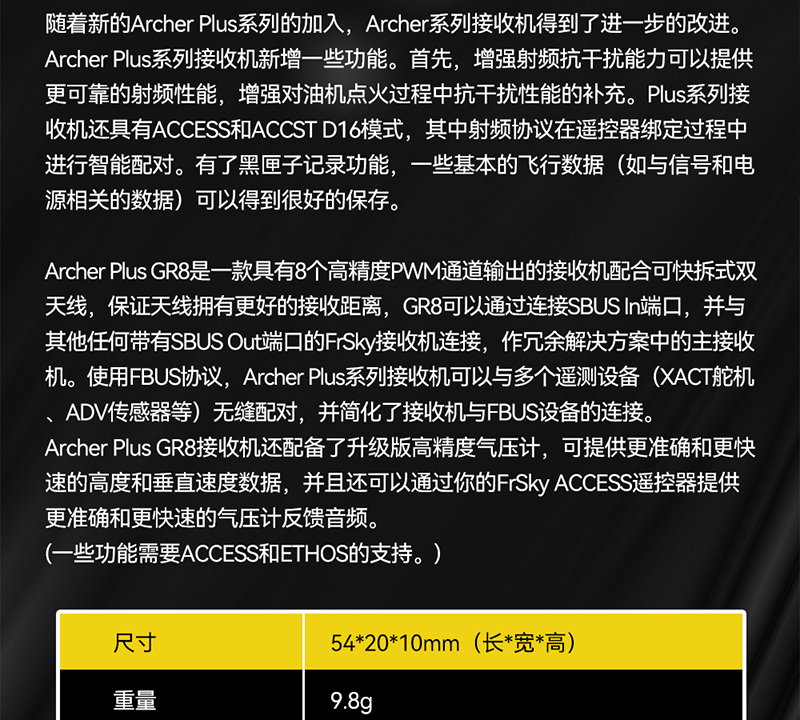 FrSky睿思凯Archer Plus GR8 8通道接收机 内置气压计