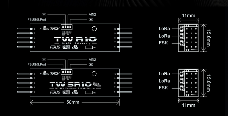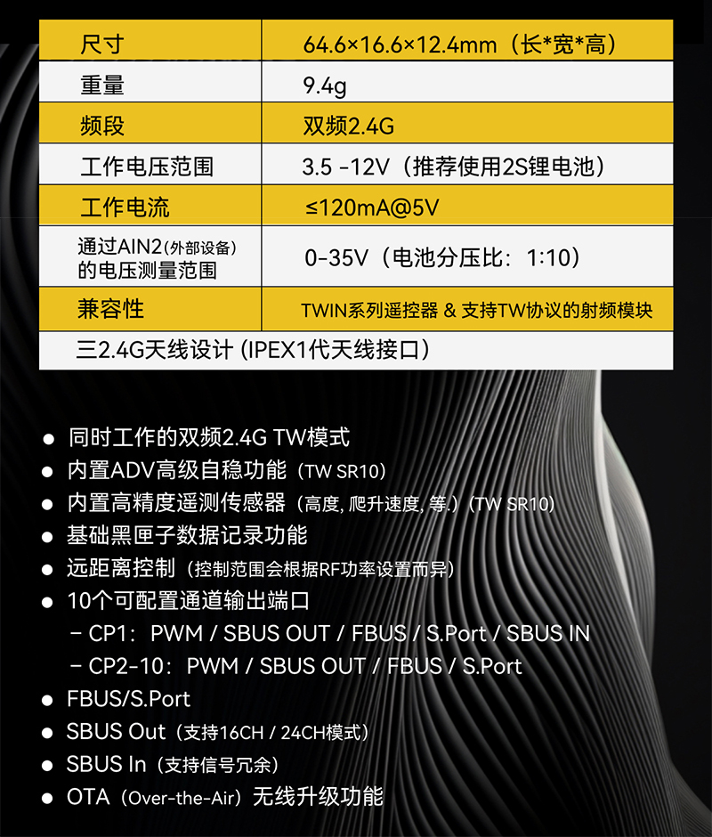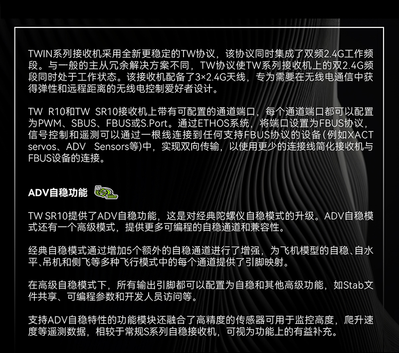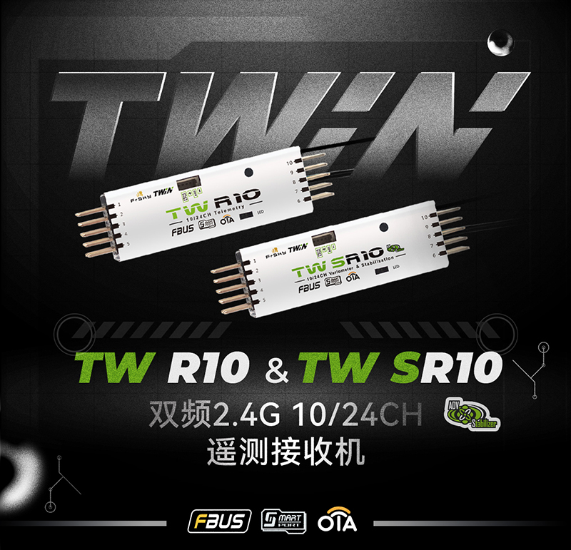 FrSky 睿思凯 TW R10 双2.4G频段自稳接收机 10通道 固定翼用