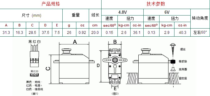 春天 26g/ 2.9kg/ .13″ 微型数字金属齿舵机 /SM-S3217M