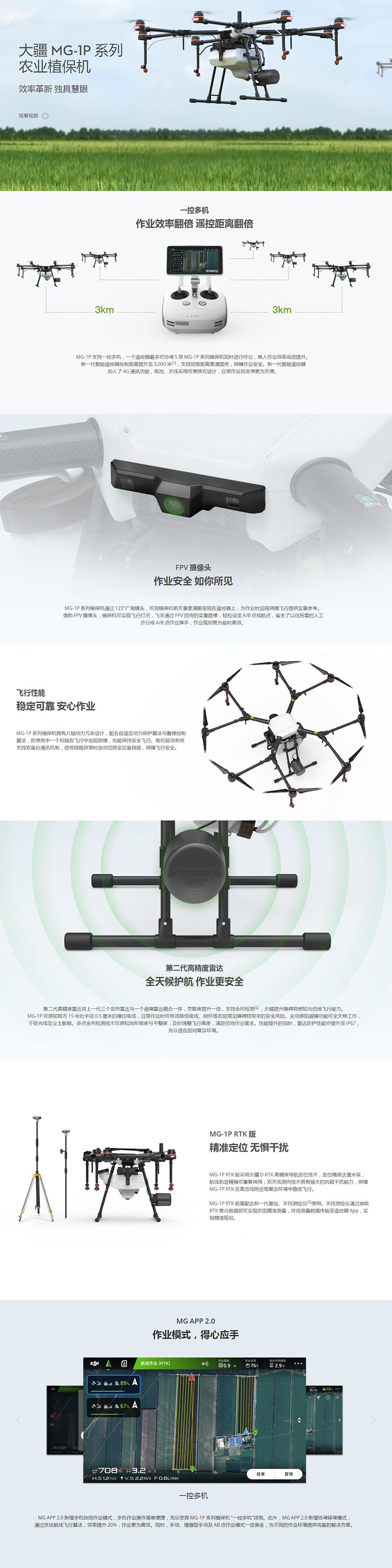 | 标准起飞重量 | MG-1P:23.8 kg,MG-1P RTK:23.9 kg |