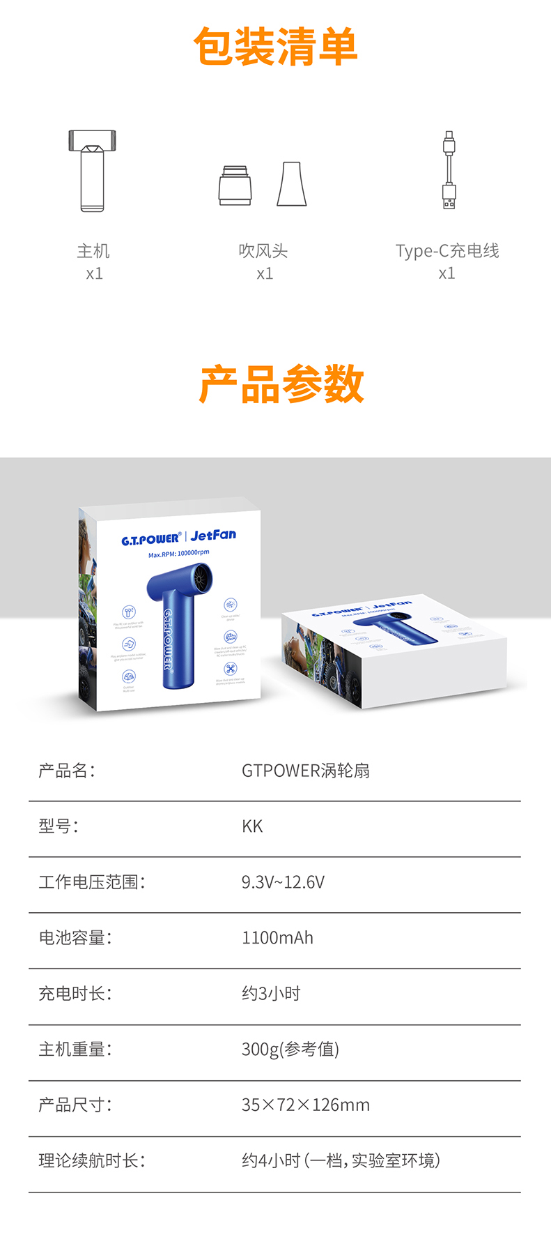 G.T.Power KK 户外常备手持涡轮扇 灰色