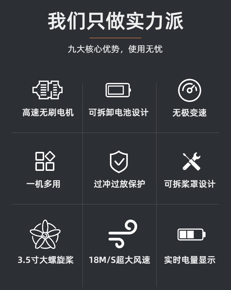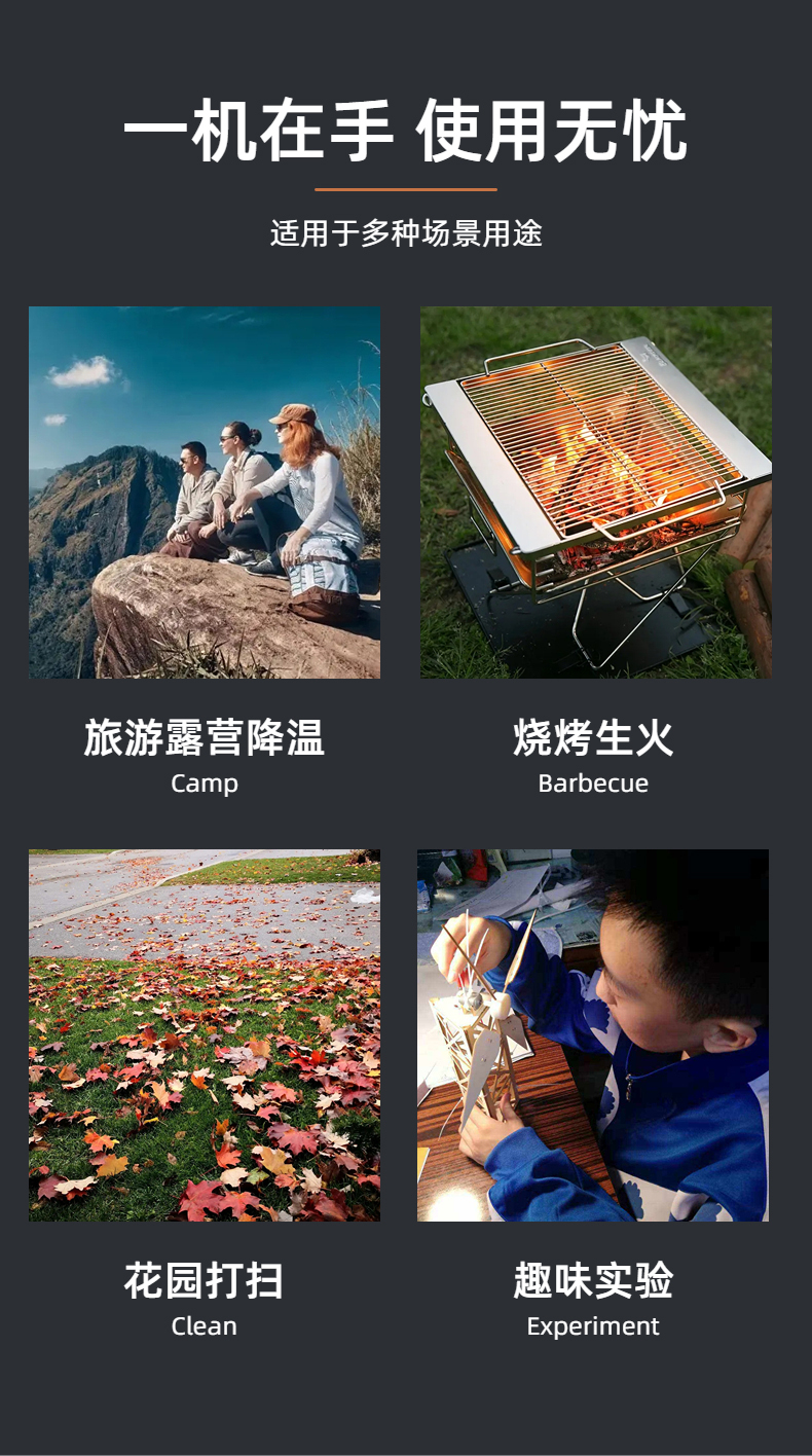 2. 本风扇工作时转速很高,不适合小孩玩;