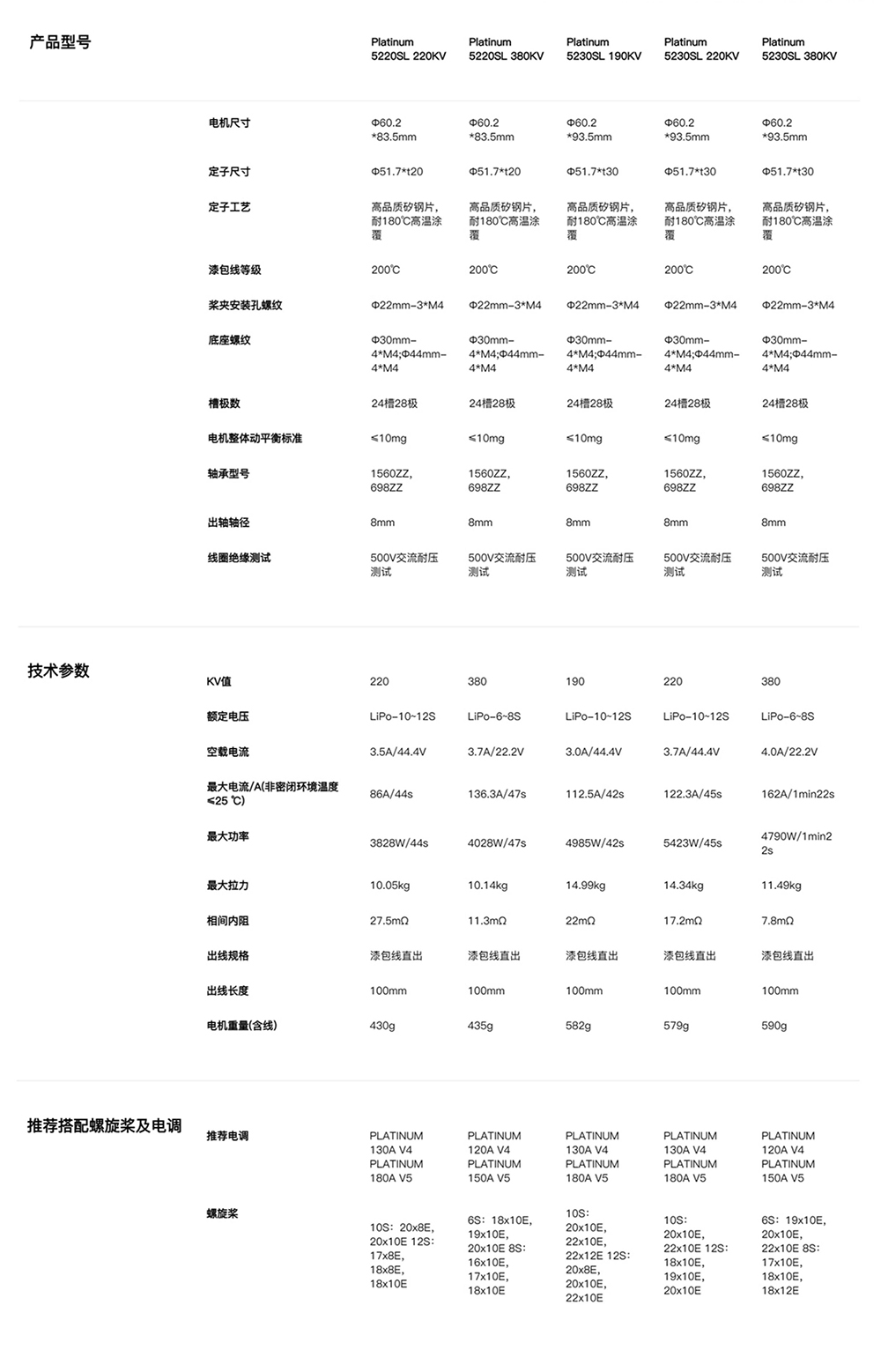 HOBBYWING 好盈 Platinum 铂金 5230-220kv 固定翼电机