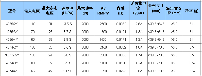 产品名称:速翔 4065 1800KV 四极无刷马达