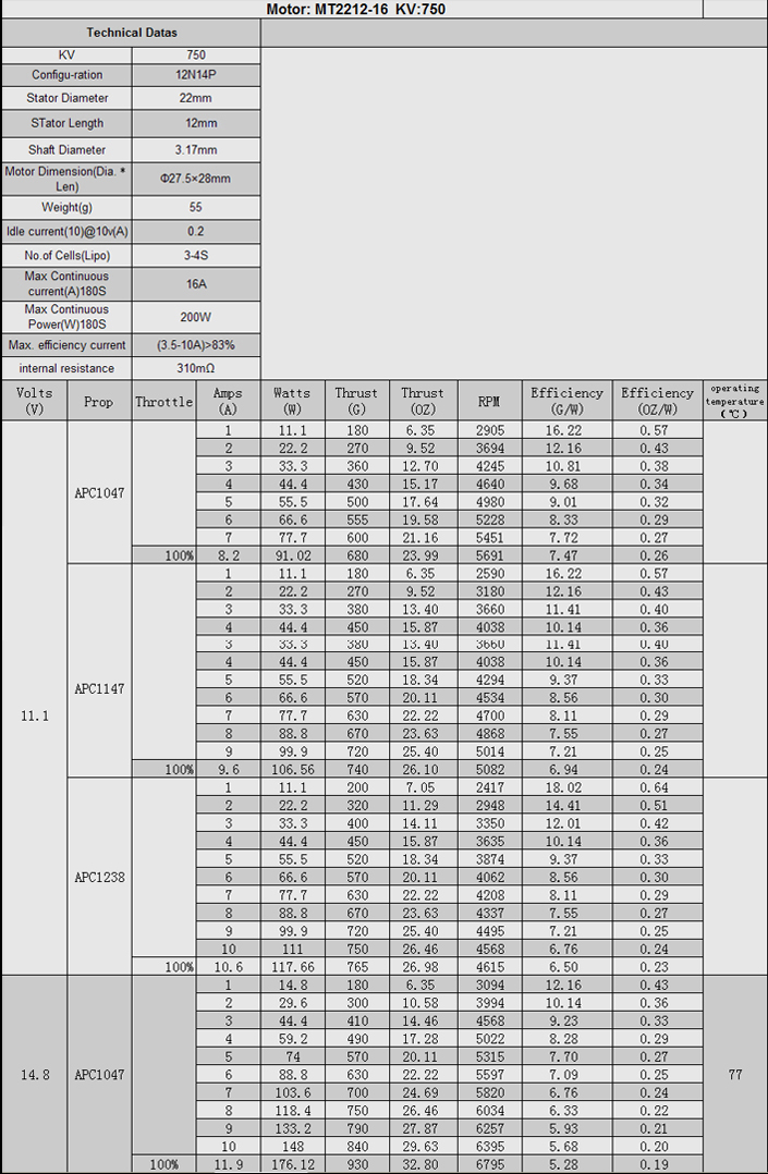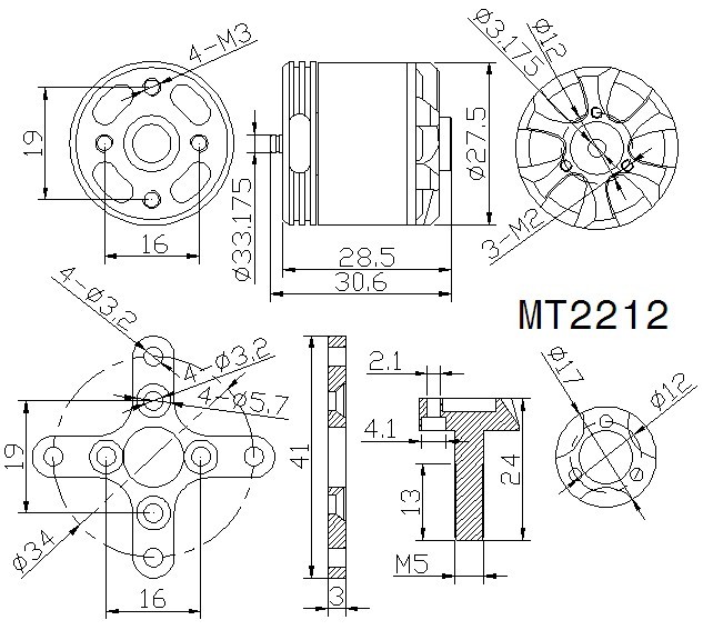 T-Motor MT2212 750KV 多旋翼外转子无刷电机 (3-4S)