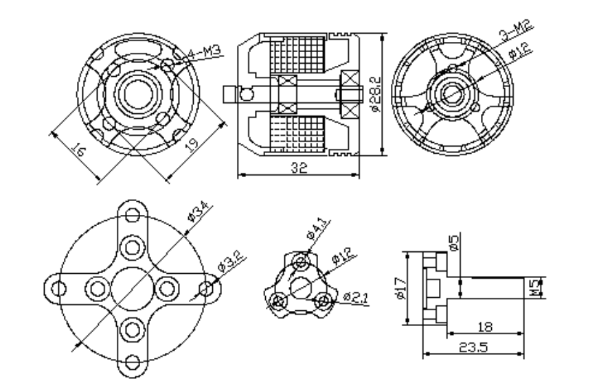 马达固定孔距: 16*19mm