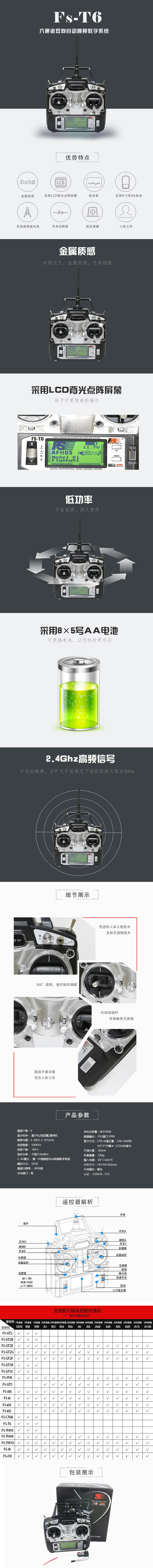 FLYSKY富斯FS-T6直升固定翼滑翔机多轴 6通道发射机 /R6B接收机