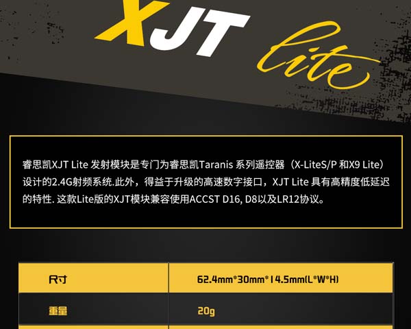 Frsky 睿思凯 XJT Lite 发射模块 2.4G高频头 兼容 D16 D8 LR12 协议