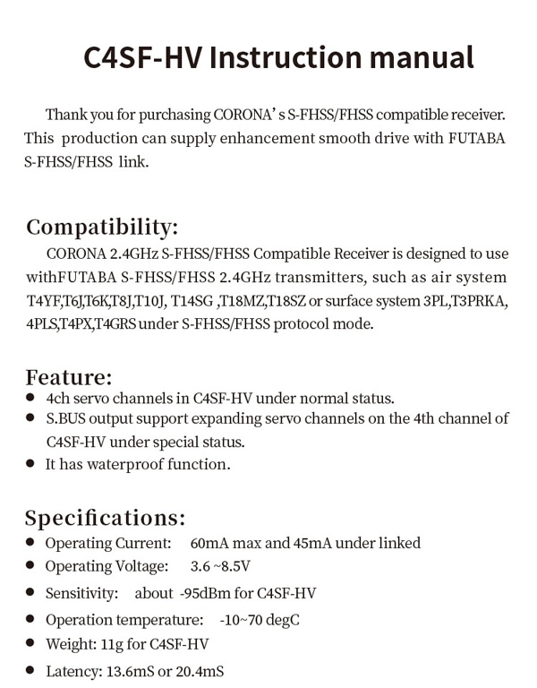 CORONA 日冠 C4SF-HV S-BUS 2.4G 接收机 兼容 futaba 3PV 3PK 4PKS T14SG