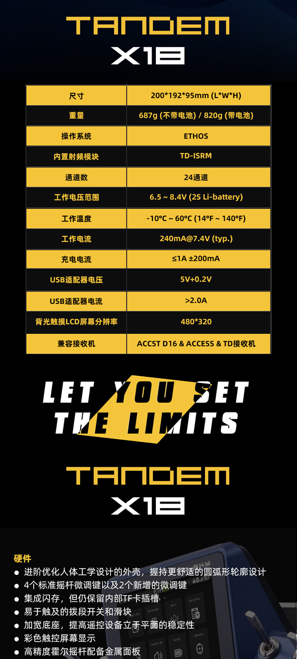 FrSky 睿思凯 TANDEM X18 黑色 双频遥控器 ETHOS 中文系统
