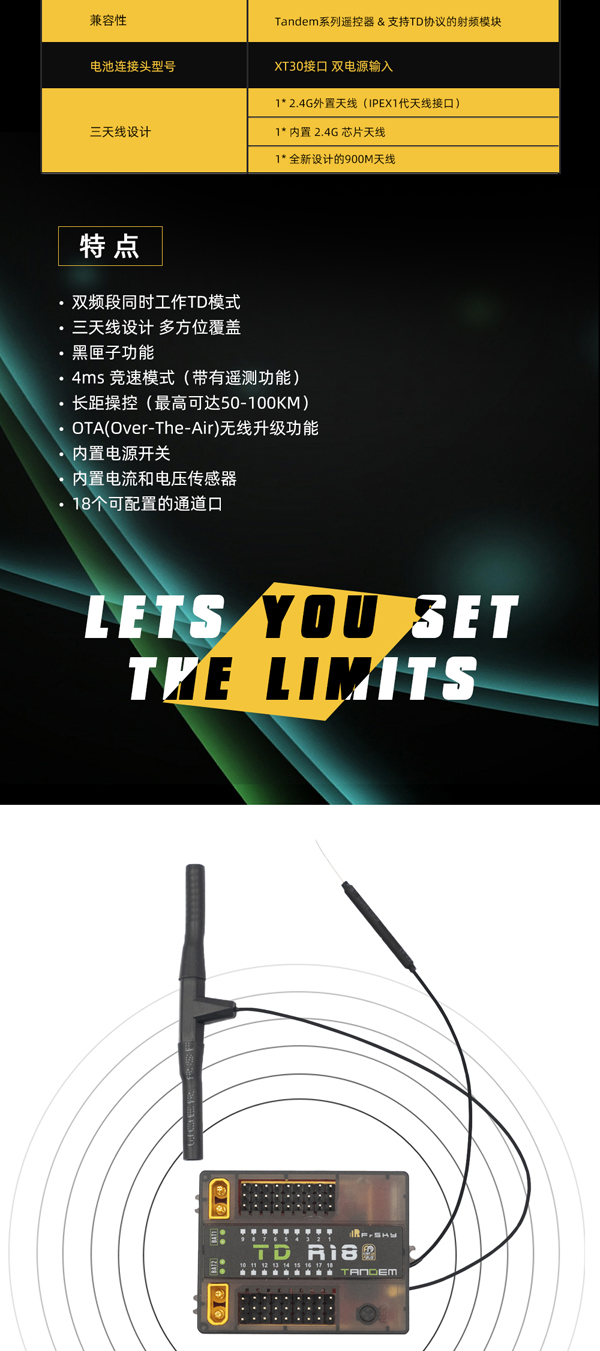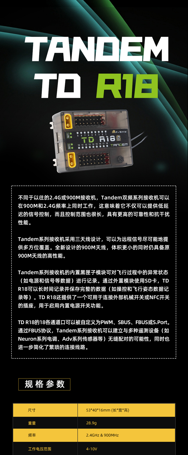 FrSky 睿思凯 TD R18 2.4GHz & 900MHz 双频接收机 18CH PWM通道
