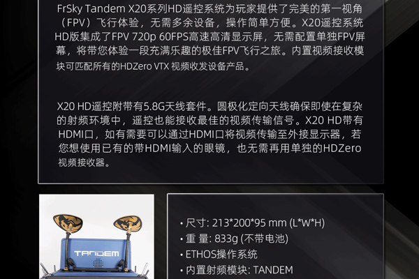 FrSky 睿思凯 遥控器 Tandem X20 HD 蓝色 内置双频模块 带图传功能