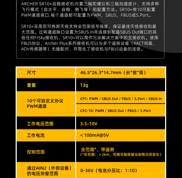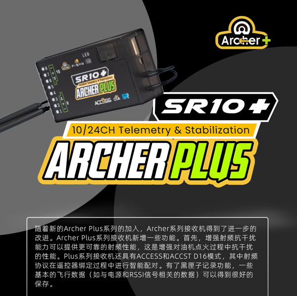 FrSky睿思凯 ARCHER PLUS SR10+自稳10通接收机 ACCESS/ACCST D16