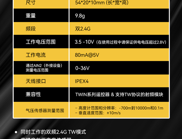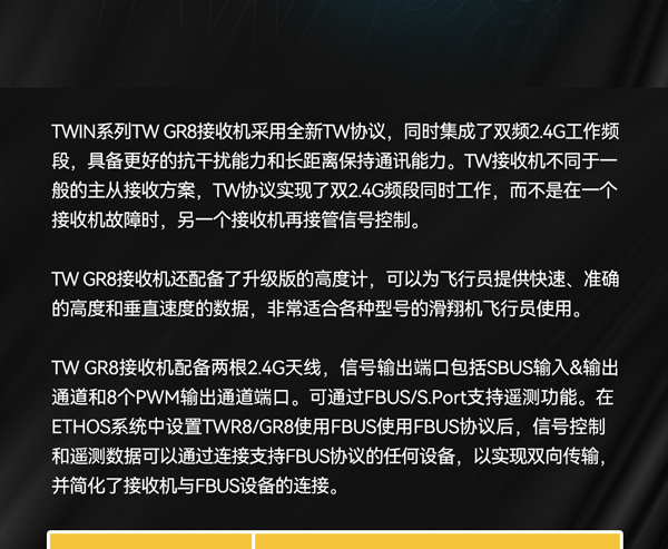 FrSky睿思凯TW GR8 双2.4GHz频段接收机 内置气压传感器 8PWM通道