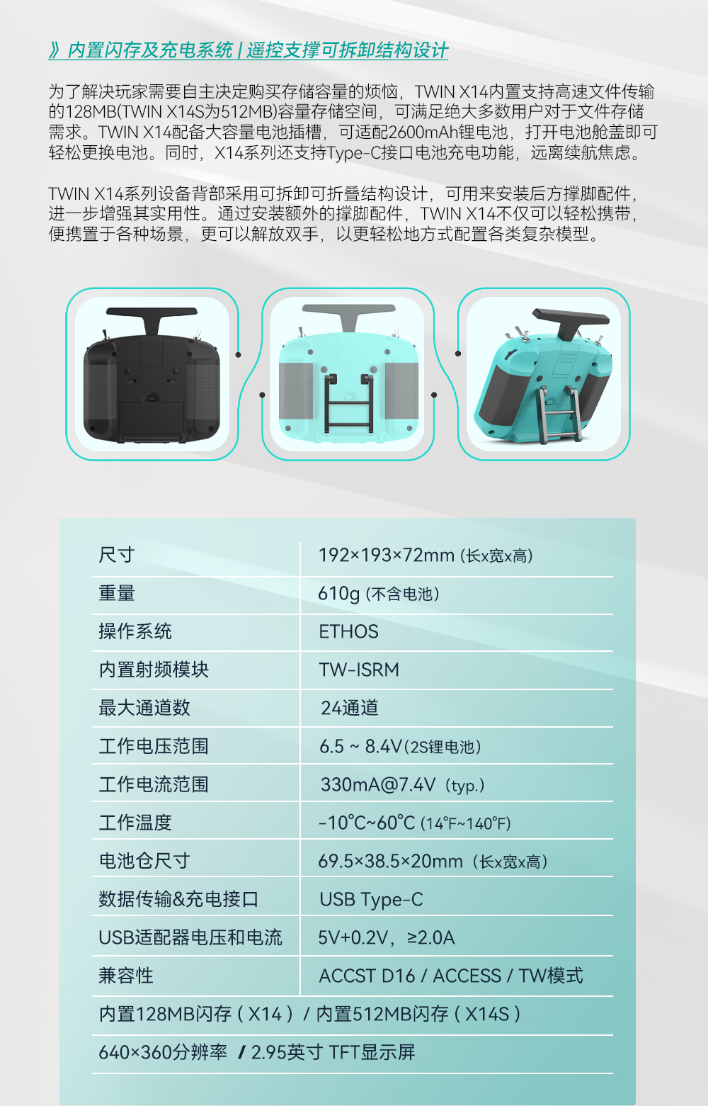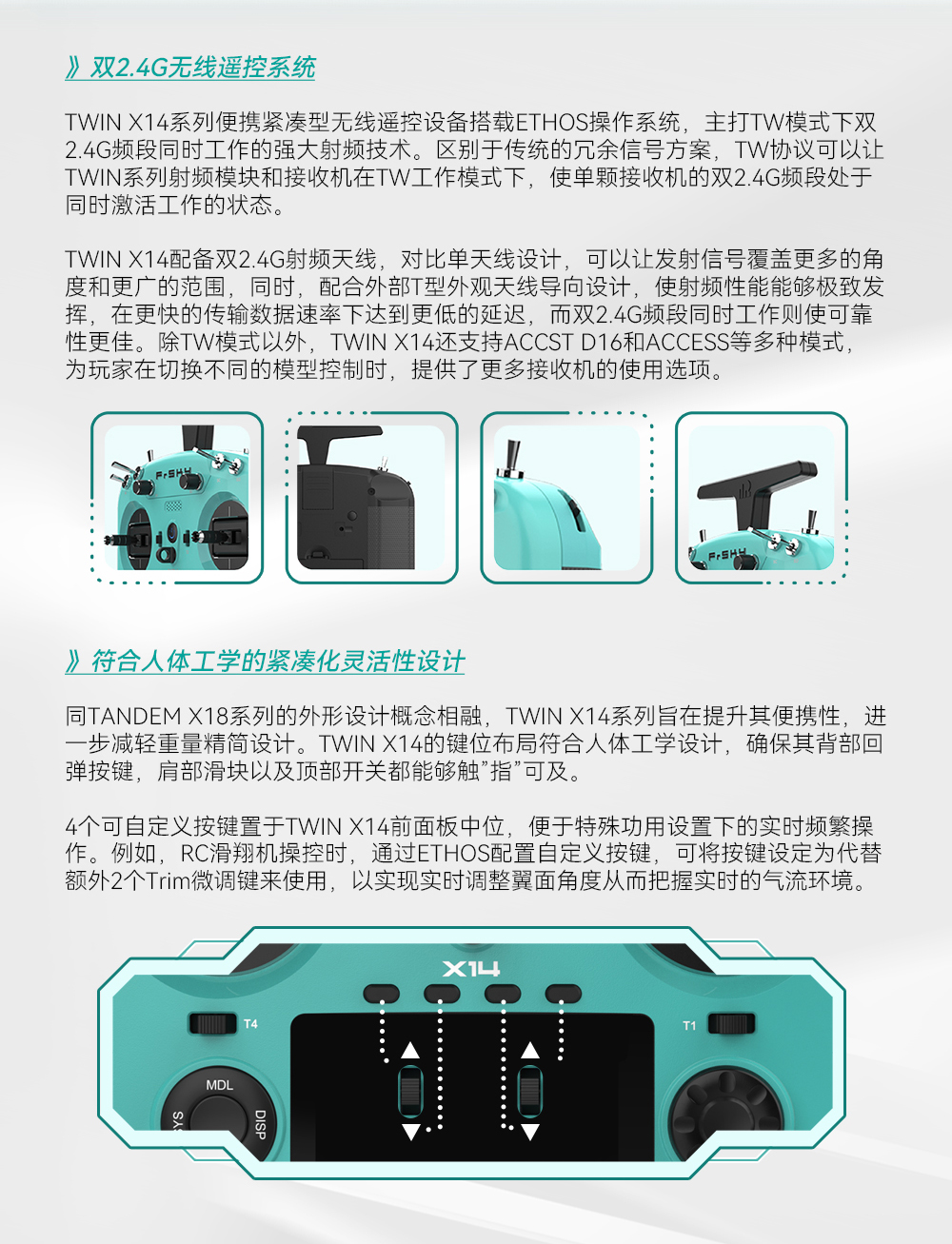 FrSky 睿思凯 TWIN X14 遥控器 单控 不含电池&接收机 黑色